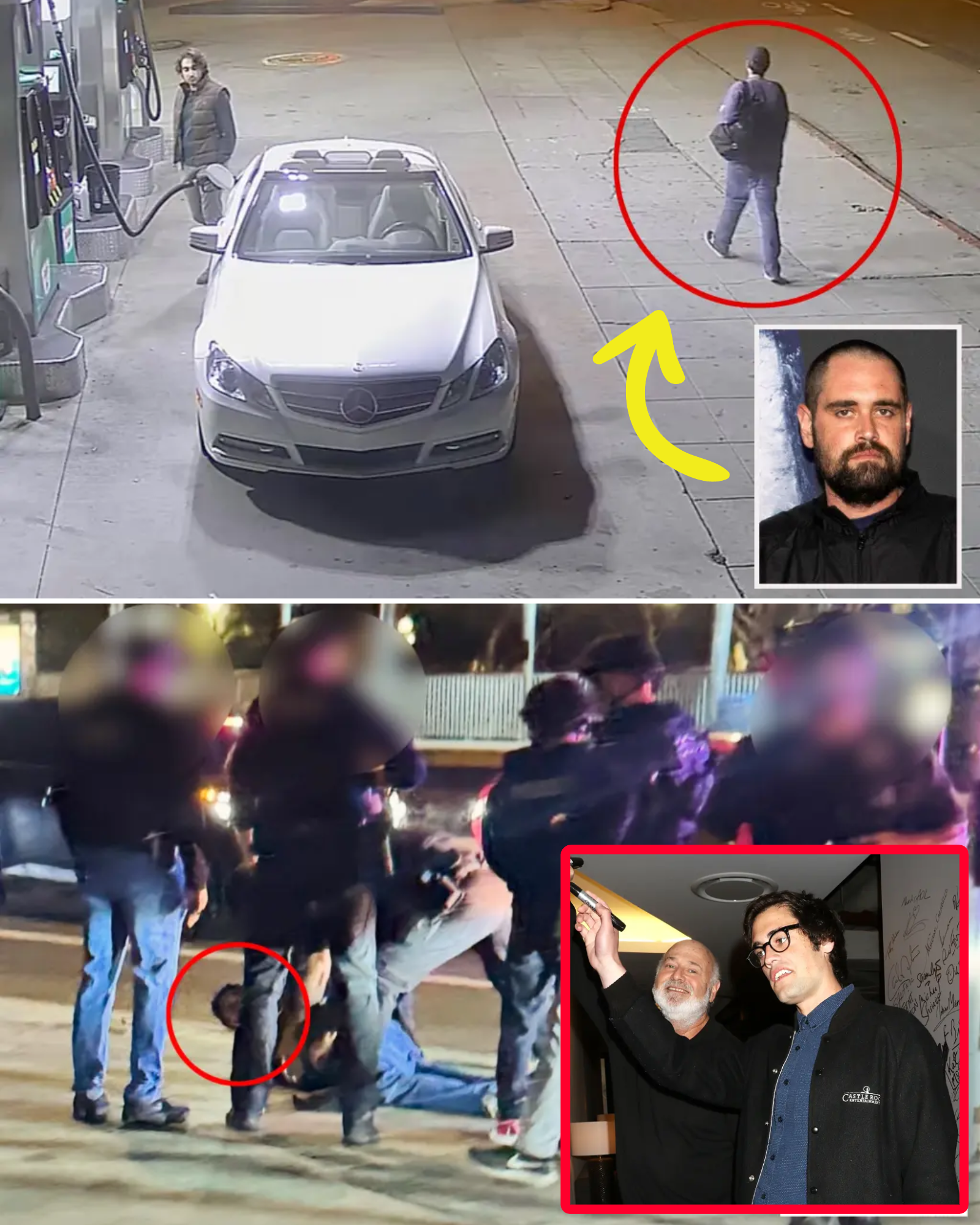 Newly released surveillance video from a Los Angeles service station has captured Nick Reiner walking slowly and calmly down a busy street in the Exposition Park area near the University of Southern California campus, just hours after authorities believe the deaths of his parents, filmmaker Rob Reiner and producer Michele Singer Reiner, occurred in their Brentwood home. The footage, obtained exclusively by media outlets on Tuesday, shows the sequence leading to his arrest Sunday evening, where he raised his arms in surrender without resistance as police vehicles surrounded him.