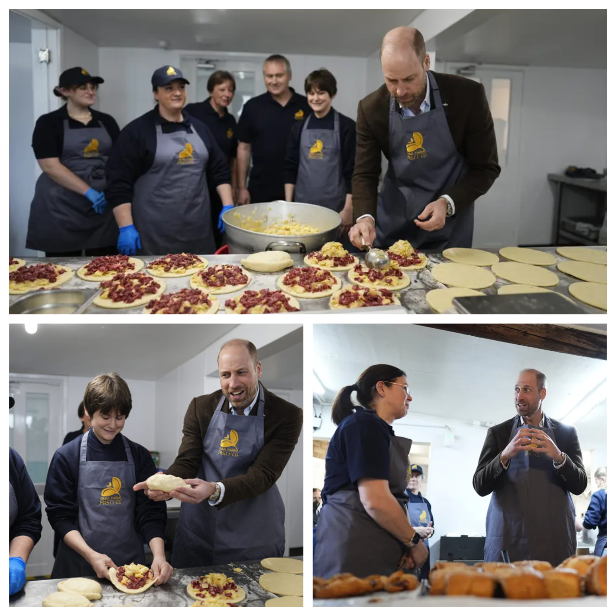 Gear Farm has been crafting pasties using the same recipe for generations, with the classic beef version featuring diced steak, potato, swede, and onion encased in golden, crimped pastry. William, dressed casually in a navy sweater and jeans, was photographed carefully folding the edges of several pasties under the watchful eye of owner Georgina Hall. “He was a natural,” Hall later told local reporters. “Very focused, asked all the right questions about the crimping technique. By the end he had a decent-looking pasty—better than some of our new starters!”