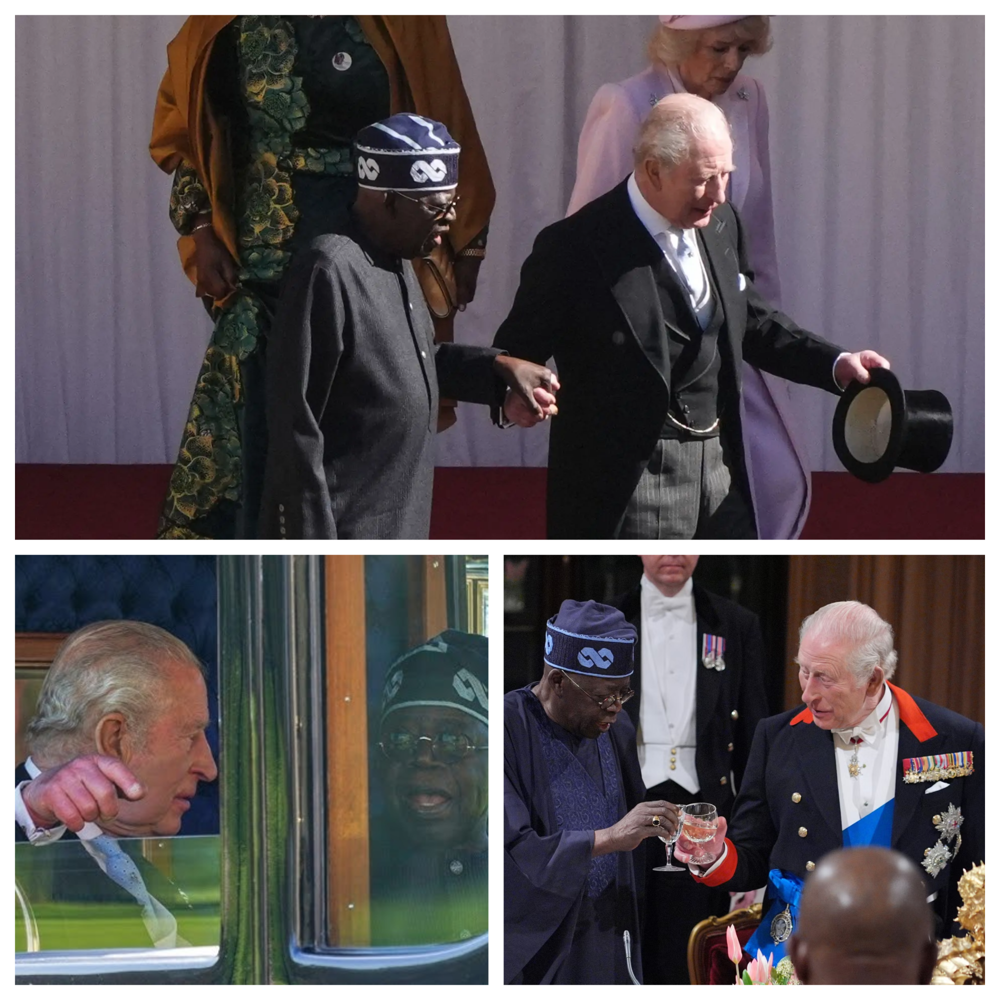 The day began under clear skies as King Charles and Queen Camilla formally greeted President Tinubu and First Lady Oluremi Tinubu in the Quadrangle at Windsor Castle. Artillery fired ceremonial salutes while both nations’ flags fluttered side by side. Charles, dressed in a classic morning suit topped unexpectedly with a top hat—a rare accessory that added a touch of vintage flair—inspected the Guard of Honour alongside his guest. The president, four years younger than the 77-year-old monarch, appeared to navigate the cobblestones and steps with measured care. On several occasions, Charles instinctively reached out, gently taking Tinubu’s arm or offering his hand for stability. These gestures were captured in photos and videos that quickly spread across social media, earning widespread praise for their thoughtfulness and humanity.