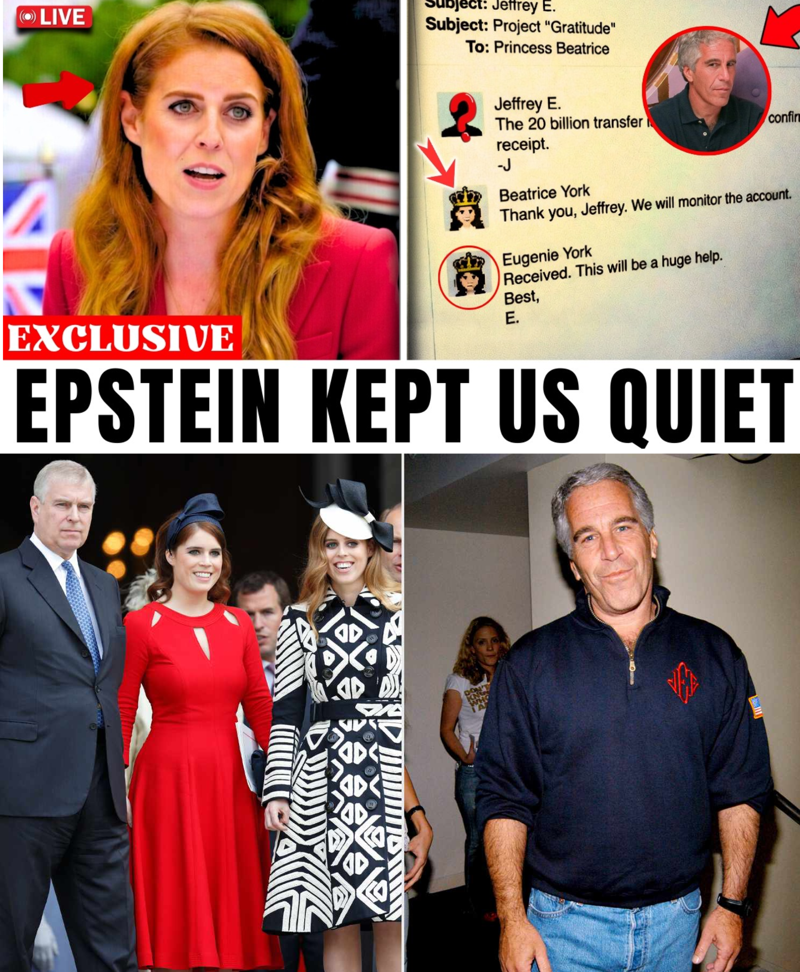 The communications reportedly used coded references—titles or identifiers that analysts later matched to Eugenie and Beatrice based on metadata, context, and timing. These transfers coincided with key moments in Epstein’s legal timeline: his 2010 release from custody, the 2015 surge in media exposure following Virginia Giuffre’s allegations, and renewed investigations around 2017. Each wave of attention prompted what the materials describe as “operational adjustments” to maintain discretion and stability.
