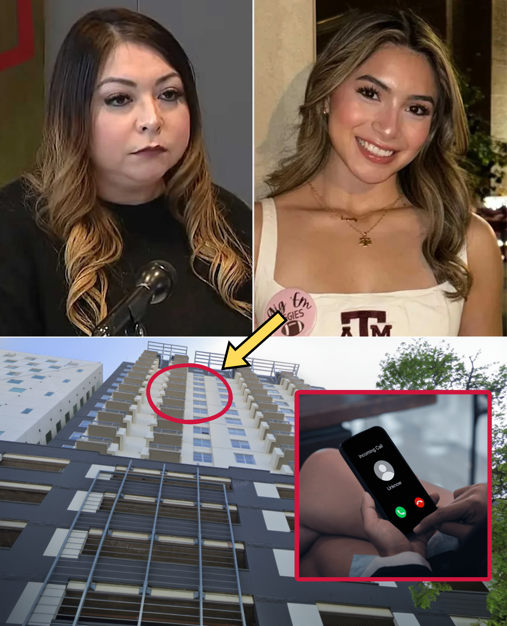 The fall? 12:30 a.m. sharp—Javier Ruiz, night-shift barista, 911s the horror: “Thud from above—screams first, ‘Get away!’ female voices.” Paramedics hit 12:47; Brianna’s eulogy writes itself by 12:56—blunt trauma, one sneaker 18 feet displaced, Aggie ring clenched like a talisman. Balcony’s barren: No DNA, no prints, “recent wipe residue” per forensics. At 44 inches high—Brianna’s 5’2″ no match—it’s no casual climb. Toxicology: Booze brutal, no foulants. The deleted November 25 note—”Can’t anymore, sorry Mom/Dad/Alex”—now reeks retrofitted, amid October scars from “fights gone wrong.” APD’s December 4 confab—”Suicide supported: Note, ideation texts”—ignored the audio’s alarm bells. Marshall’s “no criminality”? Blitzed by this blast.