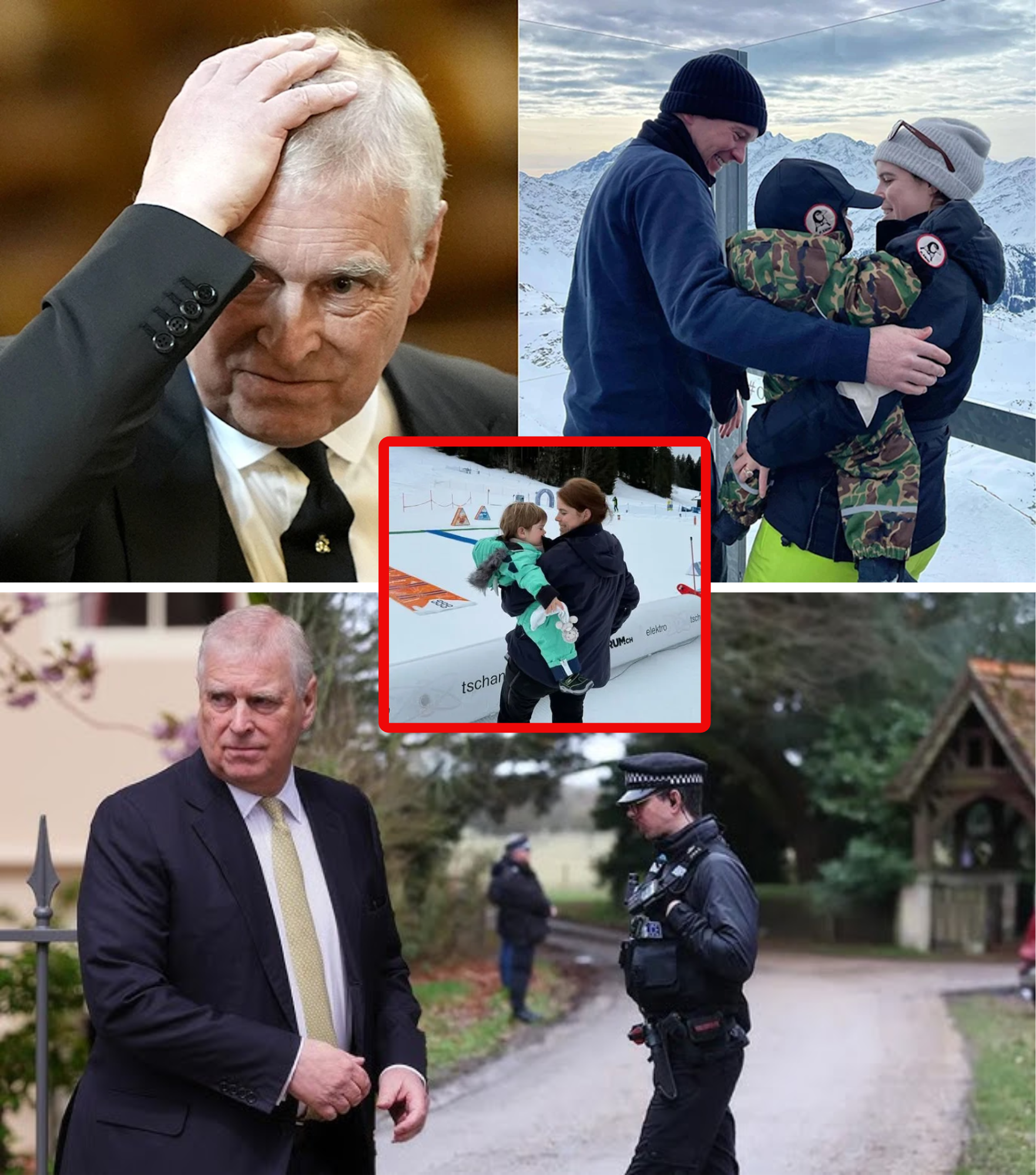Princess Eugenie appeared relaxed and joyful during a family ski holiday in the exclusive Swiss resort of Gstaad, captured enjoying lunch with her husband Jack Brooksbank and their young sons August and Ernest mere hours before her father, Andrew Mountbatten-Windsor, faced an unprecedented arrest. Eyewitnesses described the 35-year-old princess as casually dressed in ski gear, chatting amiably at a traditional Alpine restaurant on February 18, 2026, accompanied by the children’s nanny and a small group of friends. The low-key outing, part of a half-term break, stood in stark contrast to the storm brewing across the Channel, where British police prepared to detain her father on suspicion of misconduct in public office.