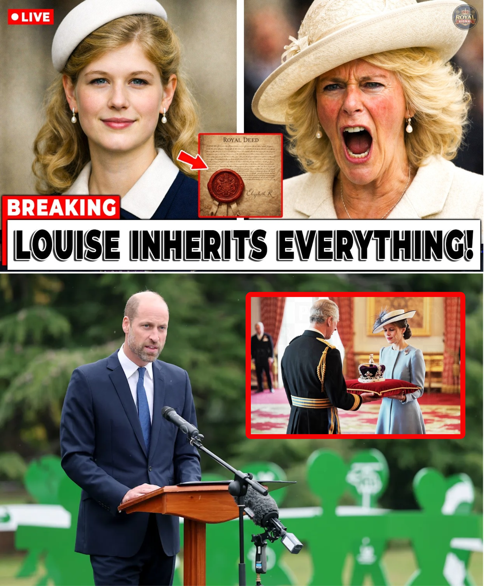 Prince William has reportedly broken decades of royal silence by disclosing previously undisclosed details about a private inheritance bestowed upon Lady Louise Windsor, the 22-year-old daughter of Prince Edward and Sophie, Duchess of Edinburgh. The revelation centers on a secluded Scottish estate once privately owned by Queen Elizabeth II, a property so discreet that even senior royals rarely discussed it openly. Insiders claim the disclosure has ignited fury within Queen Camilla’s circle, with sources describing tense behind-the-scenes confrontations and accusations of deliberate exclusion from the late Queen’s final wishes.