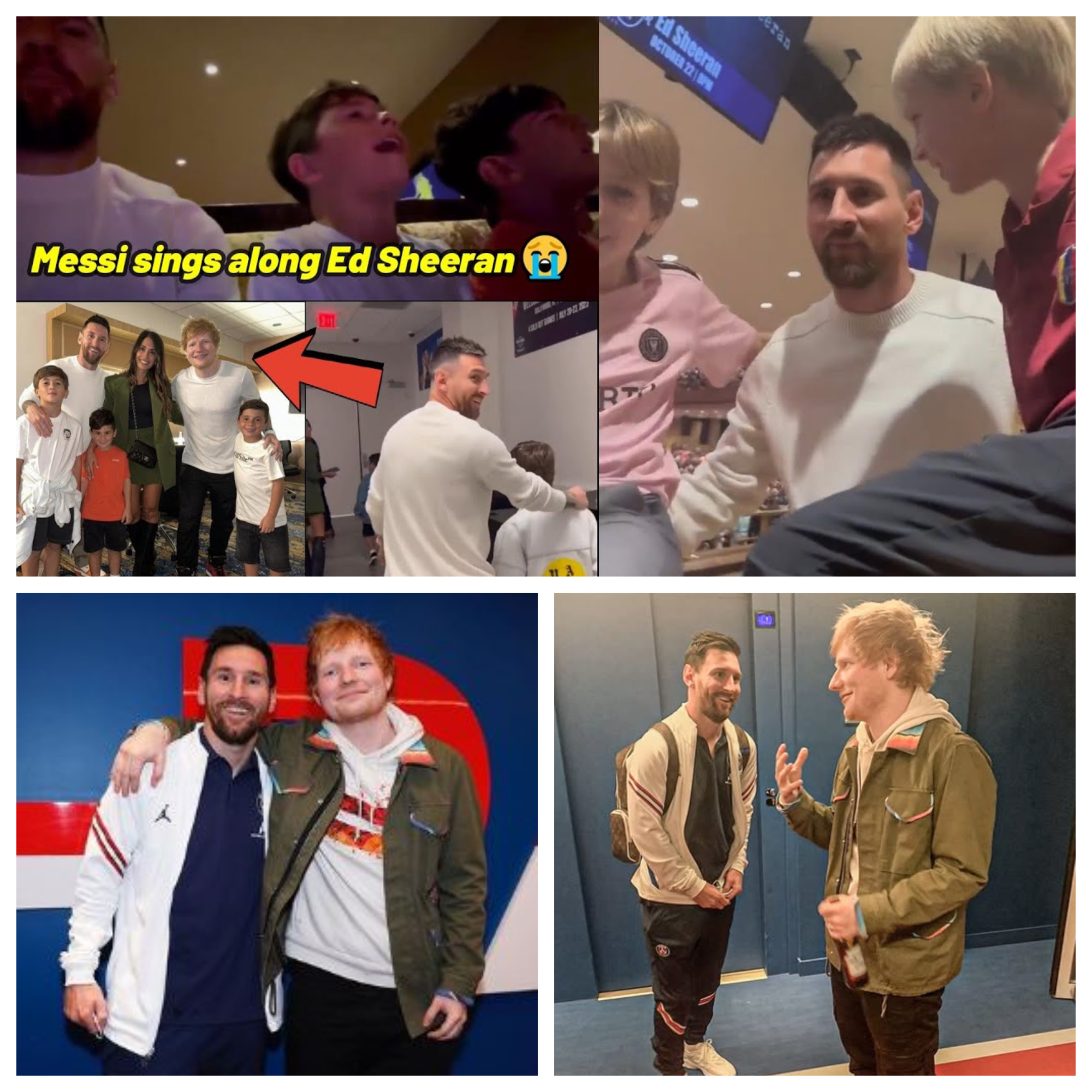 The concert was electric from the jump. As Sheeran strummed into “Castle on the Hill,” Messi – in a simple white tee and jeans, his trademark scruff softened by a dad-hoodie – pulled out his phone to capture the magic. A fan-snagged clip, now immortalized with 8 million TikTok duets, shows the family in full sing-along mode during “Bad Habits.” Thiago belts the chorus with surprising pitch, Mateo hollers the bridge like he’s at a Boca Juniors match, and Ciro? He’s on tiptoes, mimicking Sheeran’s loop pedal with invisible flair. Messi’s smirk is priceless – half amused, half awestruck – as he whispers to Antonela, “They’re stealing the show.” The video, reposted by Messi on his Stories, exploded with comments: “Mini-Messis out-singing the GOAT? Iconic!” from @FootballFeverDaily, and “Leo’s face = every dad ever 😂” from @SheeranStanClub.