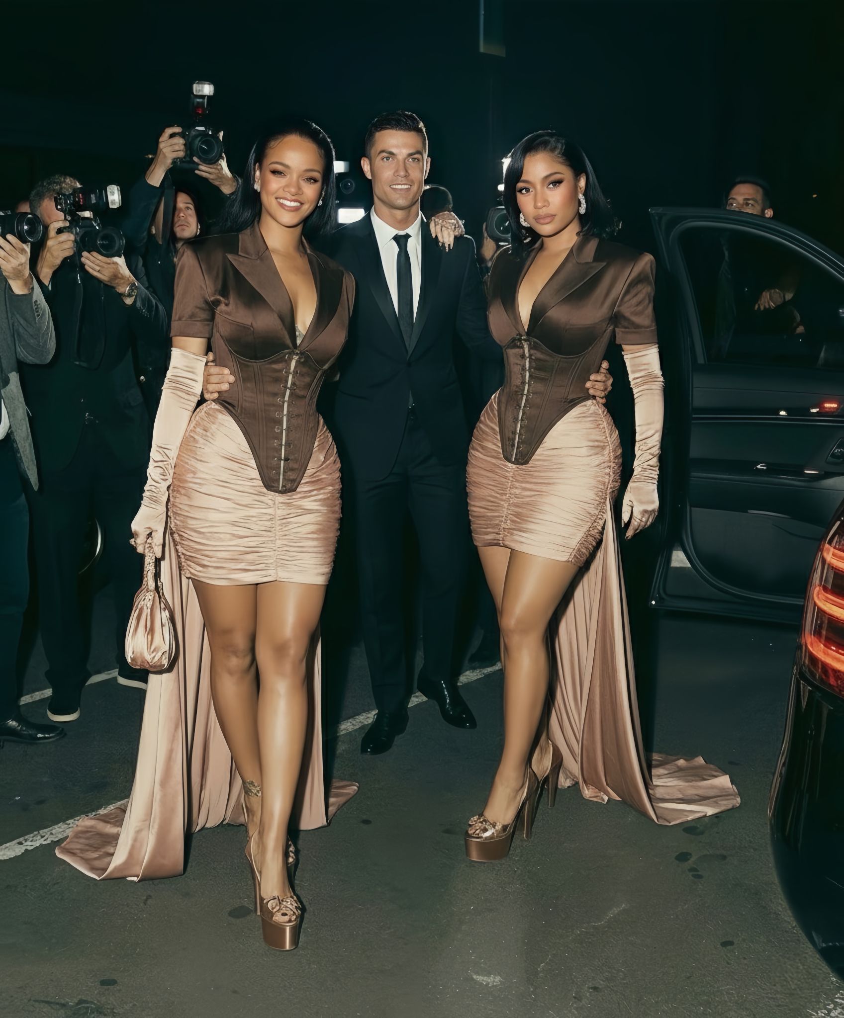 Deeper dives dredge darker waters. Ronaldo’s mid-season jet from Riyadh (Al-Nassr duties on hiatus) fuels geopolitical purrs: Sources tied to his Saudi backers murmur of a “soft power summit,” blending sports diplomacy with entertainment export—Rihanna’s Barbados roots as cultural bridge, Minaj’s Trinidad ties as Caribbean conduit, Ronaldo’s Iberian influence as European entry. “It’s Davos with diamonds,” a Davos vet leaks to Vanity Fair. “They’re plotting a ‘Global Icons Network’—podcasts, philanthropy drops, and policy nudges disguised as playlists. Think TED Talks meets Taylor Swift drops, but with billionaire buy-in.” Fan forums froth: #MiamiPowerSummit threads dissect doorman logs (Rihanna’s arrival synced with a private Gulfstream touchdown from Fenty HQ), while #NickiRonaldoRihannaSecret memes morph the trio into Avengers—Minaj as Black Widow with bars for bullets, Ronaldo as Captain America with cleats for shield, Ri as Scarlet Witch with Savage x Fenty spells.
