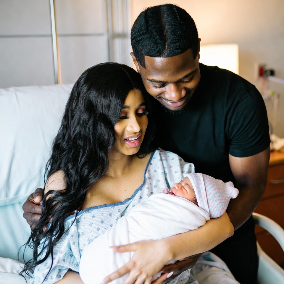 Cardi delivered via C-section at Emory University Hospital after a high-risk pregnancy that saw her hospitalized twice for blood pressure issues. “I was scared,” she admitted in the video. “But Stefon held my hand the whole time and prayed with me. This man is my rock.”