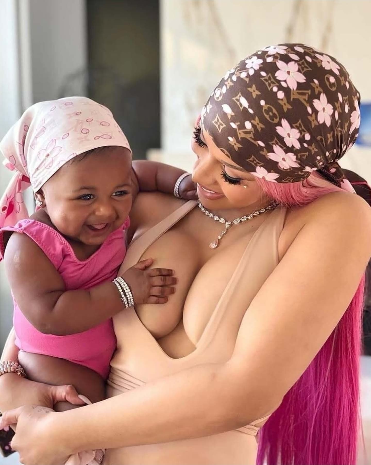 Blossom, born in 2023 to Offset and his ex, has been a regular in Cardi’s family content since the couple reconciled in 2021. Though not her biological mom, Cardi has fully embraced the role, often calling Blossom “my bonus baby” and “Kulture and Wave’s built-in bestie.” The toddler frequently appears in Cardi’s posts—dancing to “Hot Shit,” helping stir pancake batter, or napping on Cardi’s lap during studio sessions. This “Baby!” moment marks Blossom’s most viral yet, with fans editing the audio into TikTok transitions and parenting influencers using it as the soundtrack for their own bump reveals.