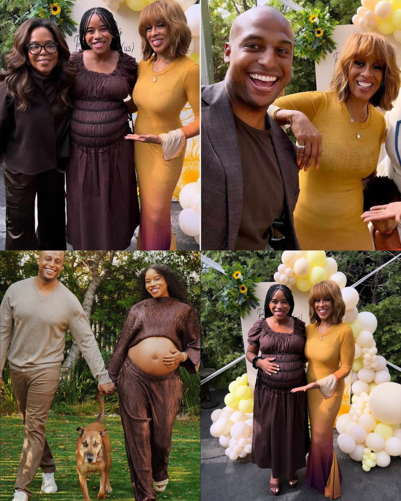 Photos from the brown-themed baby shower showed the couple beaming alongside family and friends, including King’s best friend Oprah Winfrey and her partner Stedman Graham. Additional snaps captured Will and Elise on a beach maternity shoot, posing affectionately with their dog as Elise proudly displayed her baby bump.