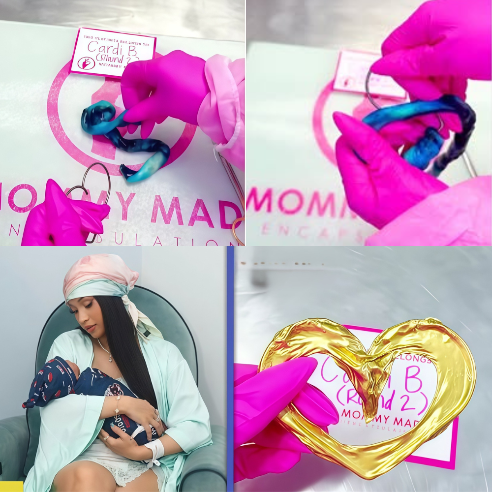 The accessory in question? A heart-shaped locket crafted from the very lifeline that connected Cardi to her baby boy during pregnancy. Dehydrated, shaped, and dipped in gold chrome, it now dangles as a wearable reminder of their bond. But what’s the real cost of this bizarre bling, and what’s the story behind turning birth tissue into high-end jewelry? Let’s dive into the details of this wild postpartum trend that’s got everyone talking.