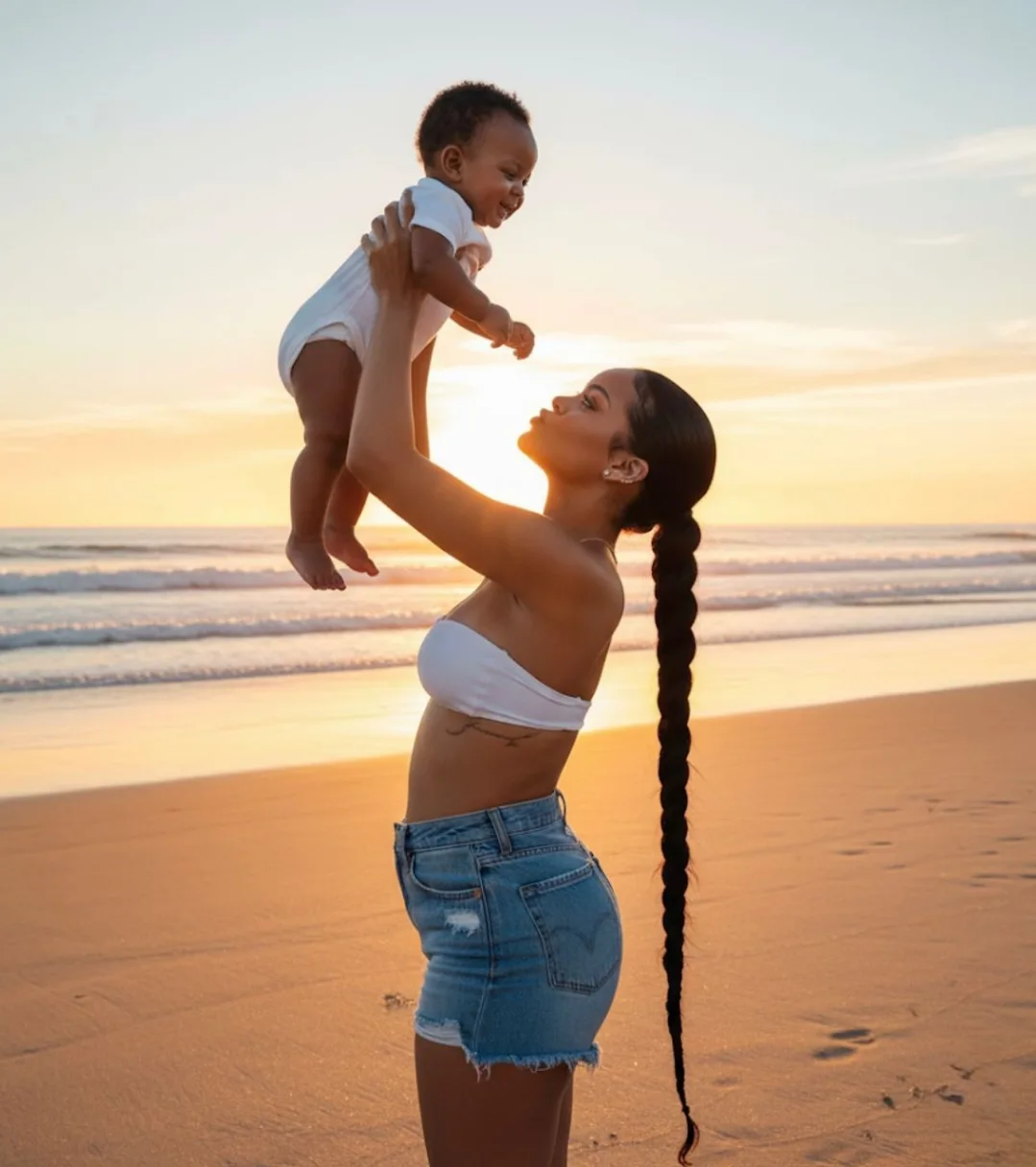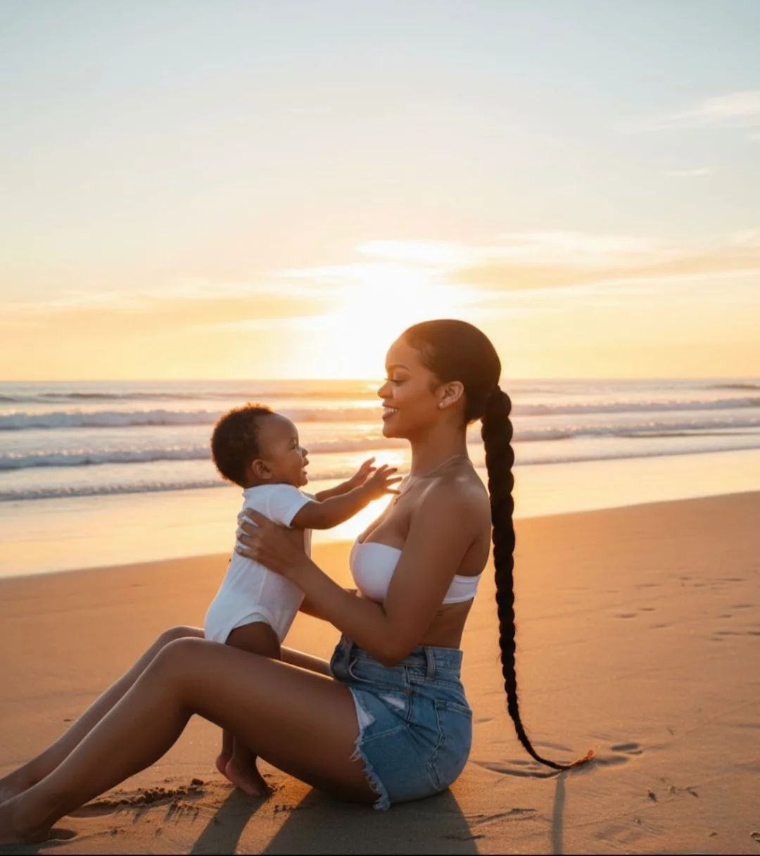 The backdrop is their $14 million Malibu estate, known for its floor-to-ceiling ocean views and minimalist design. The sunset, captured around 6:10 p.m., paints the sky in soft corals and golds, reflecting off the water below. Rihanna’s bare face and loose ponytail contrast her usual high-glam looks, while Rocki’s curls peek from under a lightweight bonnet, her chubby hand grasping her mother’s finger. Fans quickly noted the resemblance—Rocki’s round cheeks and expressive eyes echoing Rihanna’s own baby photos from Barbados. The image’s warmth has sparked a wave of similar parent-child sunset shares across platforms, with #SunsetWithRi trending globally.