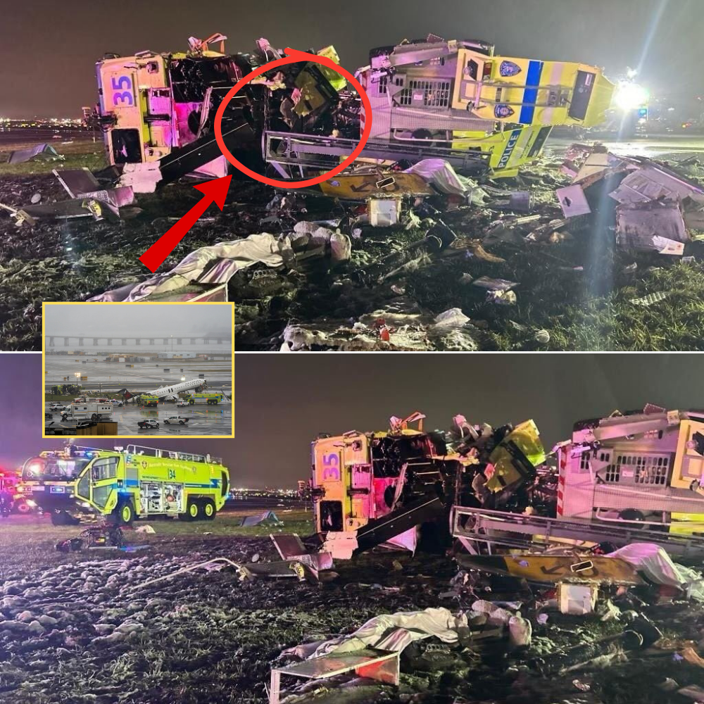 The photos, which have begun circulating widely, show a scene of significant damage on Taxiway D, with the fire truck overturned and the aircraft sustaining visible impact to its front section.
