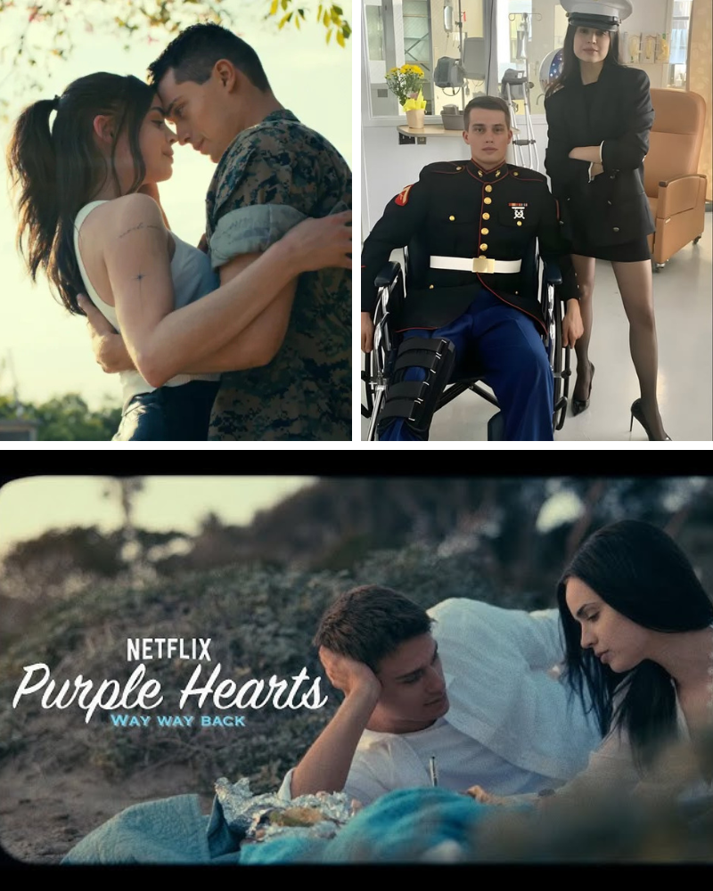 The original Purple Hearts, directed by Elizabeth Allen Rosenbaum and adapted from Tess Wakefield’s novel, dropped on July 29, 2022, like a surprise serenade, catapulting Carson—a former Descendants star with a powerhouse voice—into overnight rom-com royalty. The plot? A cash-strapped musician (Carson) and a stoic soldier (Galitzine) enter a green-card marriage for mutual gain: her music dreams funded by his benefits, his deployments eased by her stateside stability. But when Luke’s convoy is ambushed in Iraq, leaving him gravely wounded, their paper-thin pact unravels into raw, redemptive love. Penned by Liz W. Garcia and Justin Doeleman, the film blended country-tinged ballads (all co-written and performed by Carson) with timely nods to military sacrifices, earning a 65% Rotten Tomatoes score from critics but a fervent 85% audience approval that screamed “sequel bait.” It didn’t just stream; it soundtracked weddings, inspired TikTok duets, and sparked debates on love’s battlefield resilience, with Galitzine’s brooding charm and Carson’s tearful solos (“Lay All Your Love On Me”) becoming instant memes.
