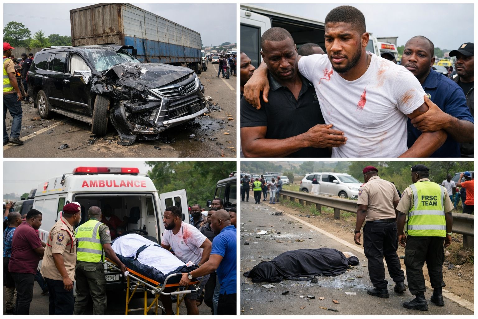 Nigeria’s Federal Road Safety Corps (FRSC) quickly responded to the scene, confirming that five adult males were involved. Two perished at the site, one sustained injuries, and two escaped unharmed. Joshua, seated in the rear of the Lexus, was rescued alive and reported to have minor injuries. He was immediately transported to a specialized medical facility in Lagos for evaluation and observation.