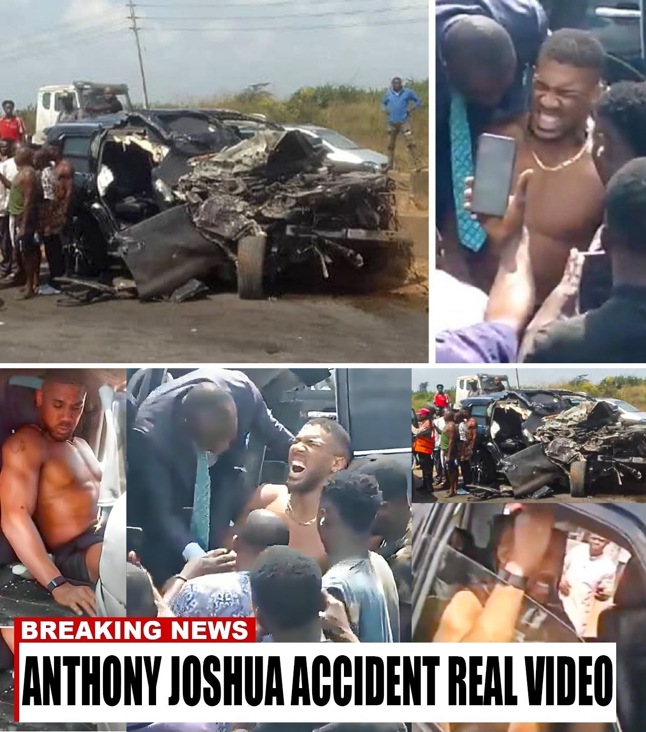 The crash, which occurred around 11 a.m. local time on the Lagos-Ibadan Expressway near Sagamu Interchange in Ogun State, left two of Joshua’s close associates dead and the former heavyweight champion hospitalized with minor injuries. Widely shared clips depict emergency responders and bystanders assisting a visibly pained Joshua from the severely damaged black Lexus SUV after it collided with a stationary Sinotruck.