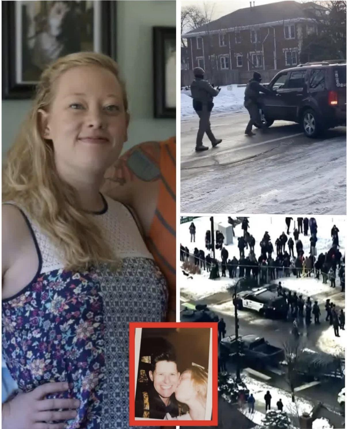 She was just trying to leave a snowy Minneapolis street during a massive immigration raid… but federal officials call it “domestic terrorism,” claiming she tried to ram officers with her SUV. Bystander videos show something very different: a calm woman, hands on the wheel, no sudden acceleration until after the shots rang out.