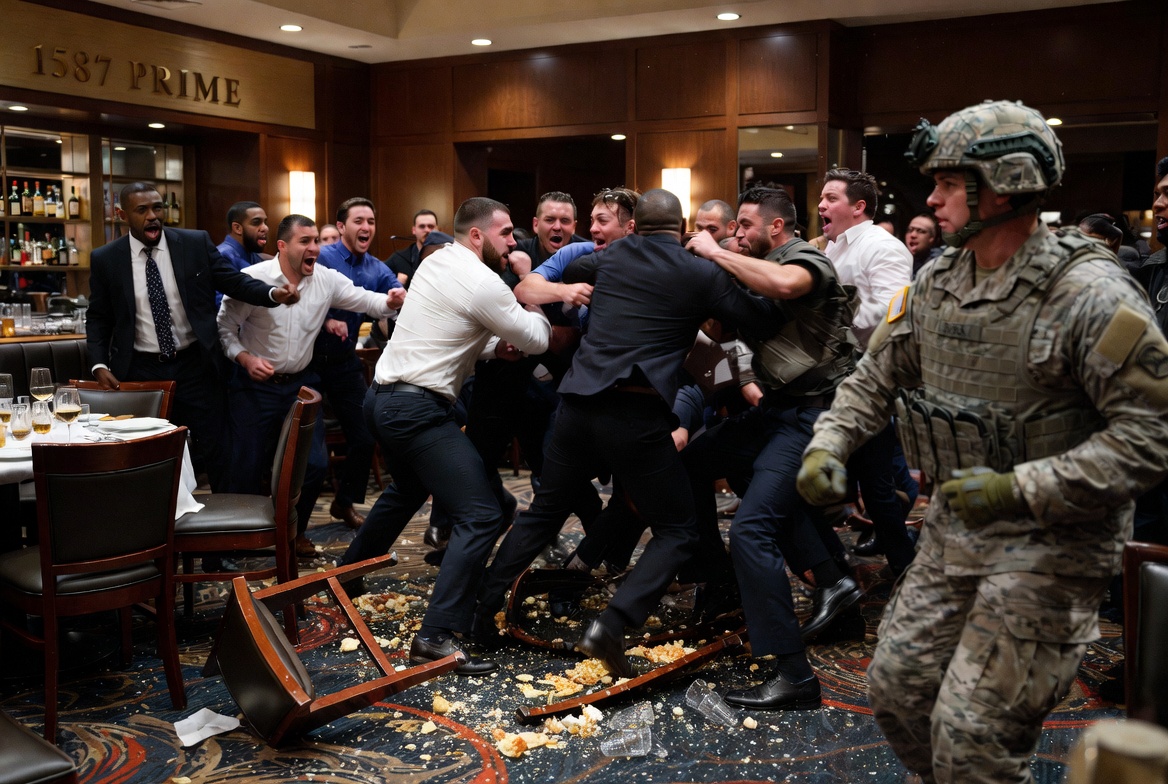 Patrons screamed, staff scrambled for safety, and security struggled to contain the melee. Just when it seemed the brawl might spill out onto the streets of Kansas City, a lone figure stepped forward: a U.S. soldier in uniform, who had been quietly dining in a corner booth with friends. With calm authority and zero hesitation, he waded straight into the center of the fray.