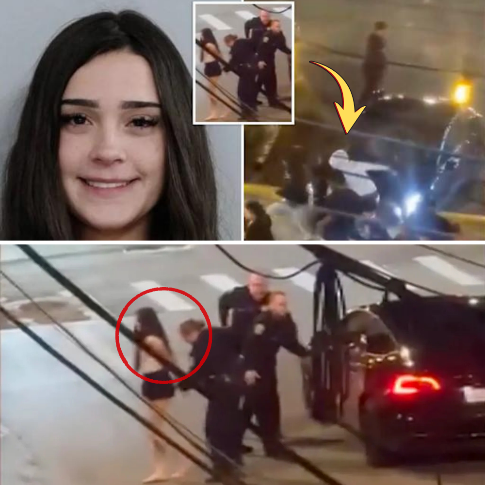 The video footage later shows a shoeless Carpenter — clad only in black shorts and a tan tank top — getting ripped from the driver’s seat by three police officers, who put her in handcuffs.