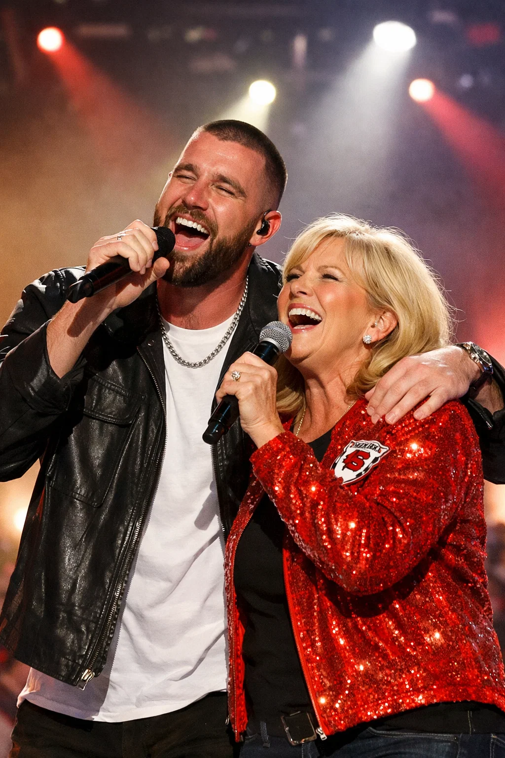 Donna Kelce, always the supportive heart of the family, has been a constant presence in her sons’ lives. Known for cheering loudly at games and sharing sweet family moments, she’s become a fan favorite herself. This collaboration highlights her playful, loving side, harmonizing effortlessly with Travis in a track that’s light, uplifting, and full of genuine emotion. It’s the kind of song that makes you smile, perhaps even tear up a little, as it bridges generations with melody and meaning.