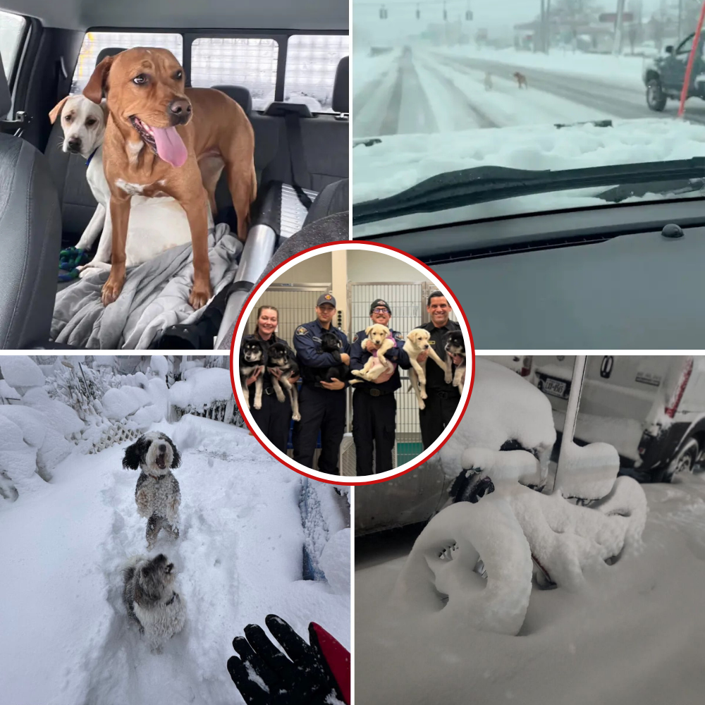 A Long Island snowplow driver rescued two lost dogs that were running down a highway during the height of the historic blizzard Monday, according to reports and authorities.