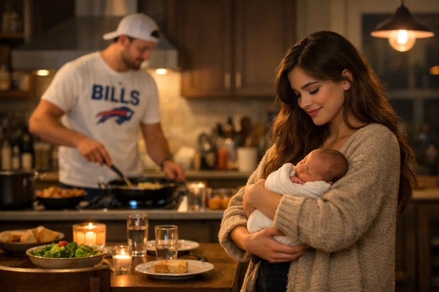 What makes their story even more touching is how grounded they seem despite their high-profile lives. Instead of rushing into the spotlight, they’re choosing to cherish private days at home — filled with soft coos, late-night feedings, and the kind of everyday happiness that new parents dream about. Fans have flooded social media with warm congratulations, many noting how perfect it feels that Buffalo’s beloved quarterback now has his own little princess cheering him on from the sidelines of life.