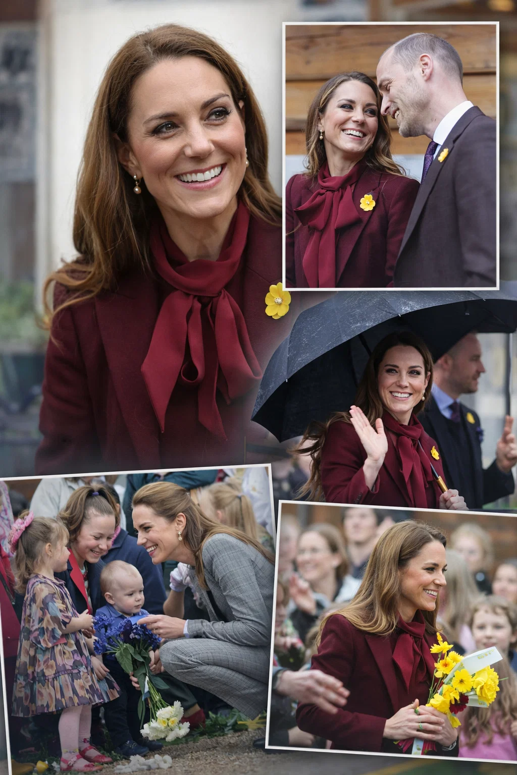 Kate, 44, joined Prince William, 43, for a visit to Powys, Wales, ahead of St David’s Day as crowds of well-wishers braved the rain to meet them.