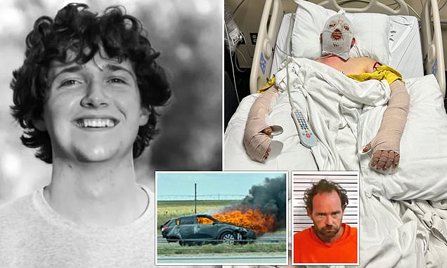 Aidan Poole, 19, was driving on I-27 to Texas Tech University when an alleged intoxicated driver, Thomas Rich, hit Poole’s car, sending it airborne, and causing his gas tank to explode and erupt into flames, according to multiple local outlets.
