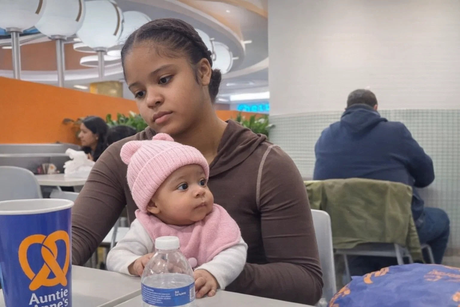 In the frantic seconds that followed, her parents rushed to safety. Her father, Jamari Patterson, grabbed his daughter and raced toward help. Amid the screams and confusion, Kaori’s hat — the one she had been wearing just moments earlier — disappeared. Police later collected a blood-stained hat from the scene as evidence, but the family says the specific mũ (hat/cap) their baby was wearing that day has never been returned to them.